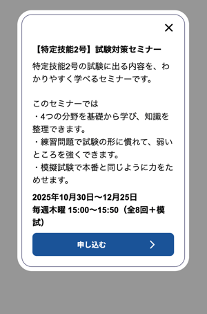 ポップアップでレッスンの詳細が表示されたら、「レッスンに申し込む 申し込む」ボタンをクリックします。