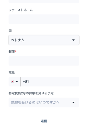 申し込みフォームに移動します。ここでは、以下の情報を入力します。