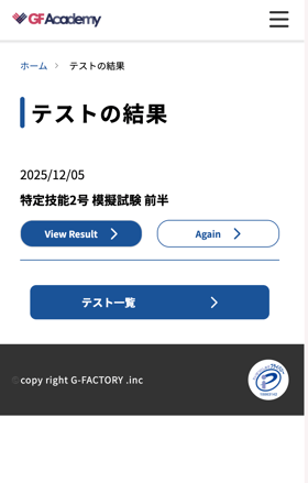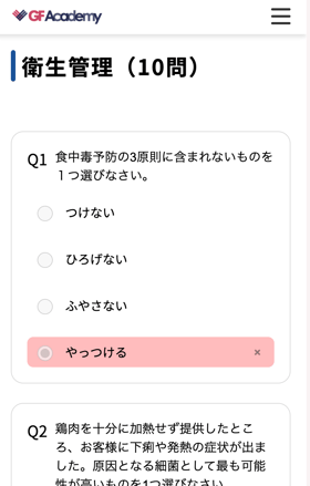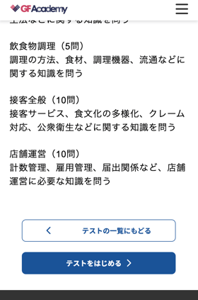 GF Academyでは、ご自身の理解度をチェックするためのテスト機能を提供しています。