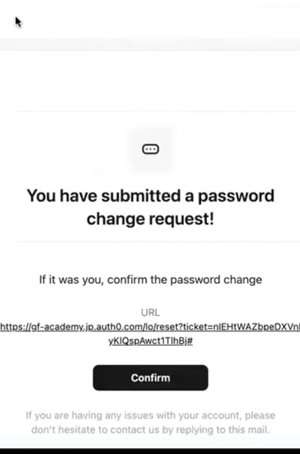 4-2.メール本文に記載されている再設定用のリンク(URL)をクリックし、パスワード変更フォームへ移動します。