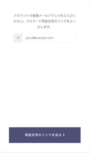 パスワード再設定画面で、ご自身の登録済みのメールアドレスを入力します。