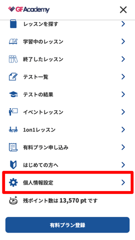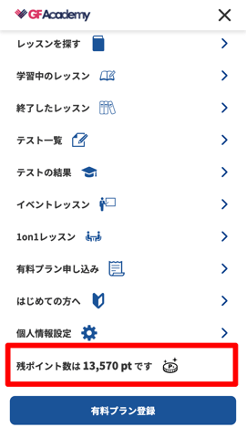 3. 購入完了後、メニュー内で現在のポイント残高を確認できます。