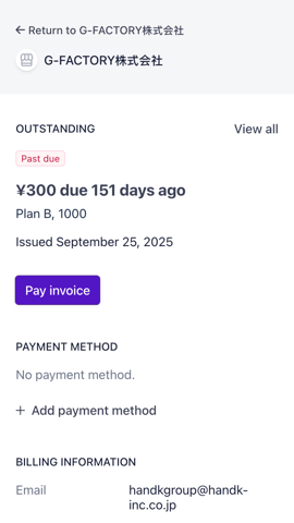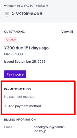 5. Stripeポータルでは、新しいカードの追加、支払い方法の変更、請求情報の更新などのお支払い管理が可能です。